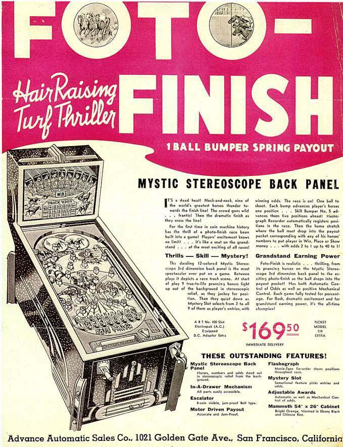 | 1937 | FOTO FINISH Payout Machine | - |  | - | - | - |