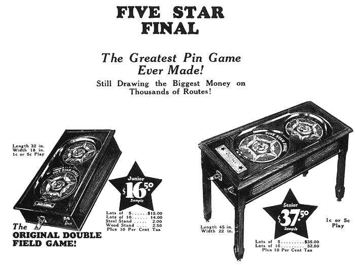 | 1936 | COLLEGE FOOTBAL pay out machine | - |  |  |  |  |