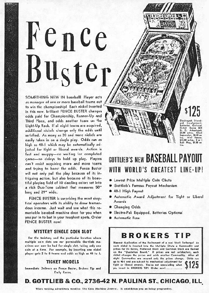 | 1936 | FENCE BUSTER pay out machine | - |  | - | - | - |