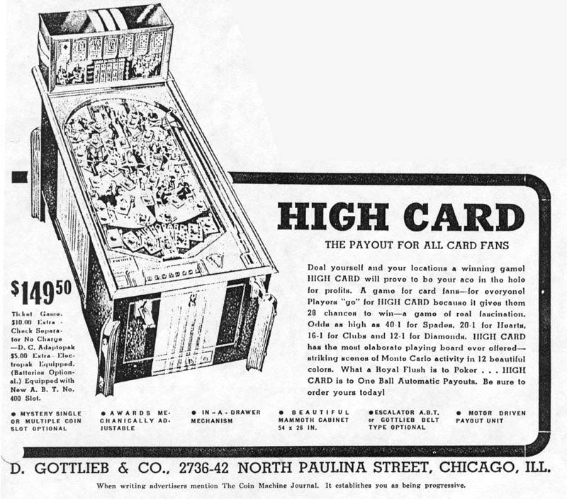 | 1936 | HIGH CARD pay out machine | - |  | - | - | - |