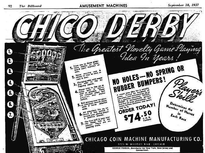| 1937 | CHICO DERBY pay out machine | - |  | - | - | - |