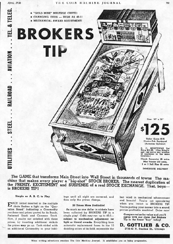 | 1936 | BROCKERS TIP payout machine | - |  | - | - | - |