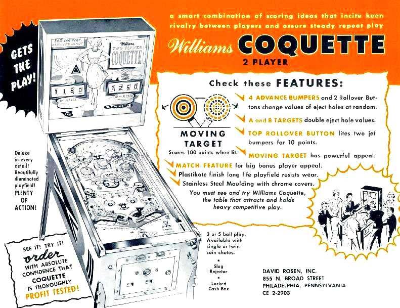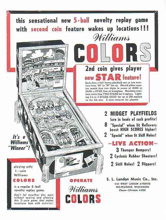 | 1951 | SHOO SHOO first pinball bougth in 1959 | - | - | - | - | - |